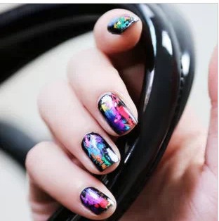 使用不同圖案的星空紙與指甲油做搭配,會有意想不到的效果