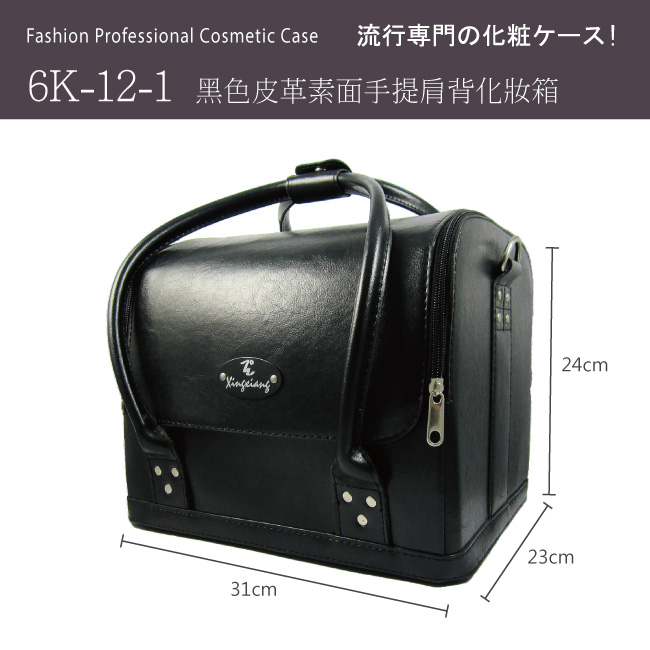 【Xingxiang 形向】黑色皮革化妝箱(附背帶) 6K-12-1